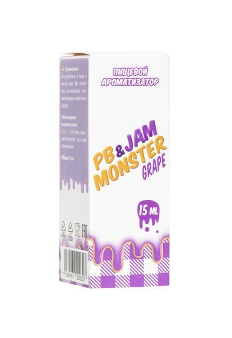 PB & Jam Monster Grape - ароматизатор для вейпа в объёме 15 мл. Для получения готовой для использования жидкости нужно добавить только глицерин (приобретается отдельно).