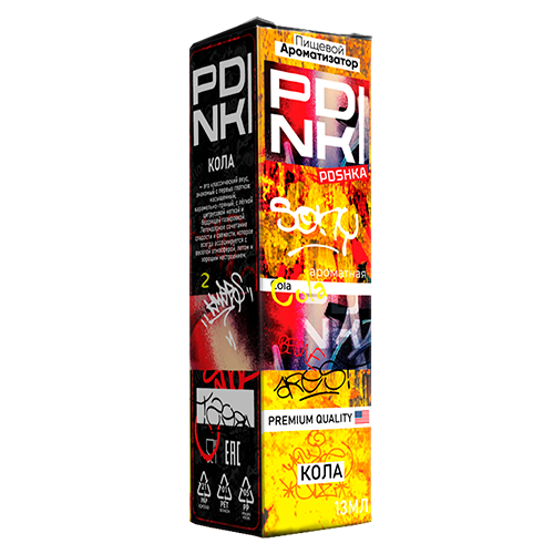 Pdnki Кола - ароматизатор для вейпа в объёме 13 мл. Для получения готовой для использования жидкости нужно добавить только глицерин (VG).