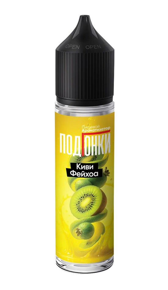 PODONKI ПОДГОНКИ Киви Фейхоа - ароматизатор для вейпа в объёме 13 мл. Для получения готовой для использования жидкости нужно добавить только глицерин (VG).