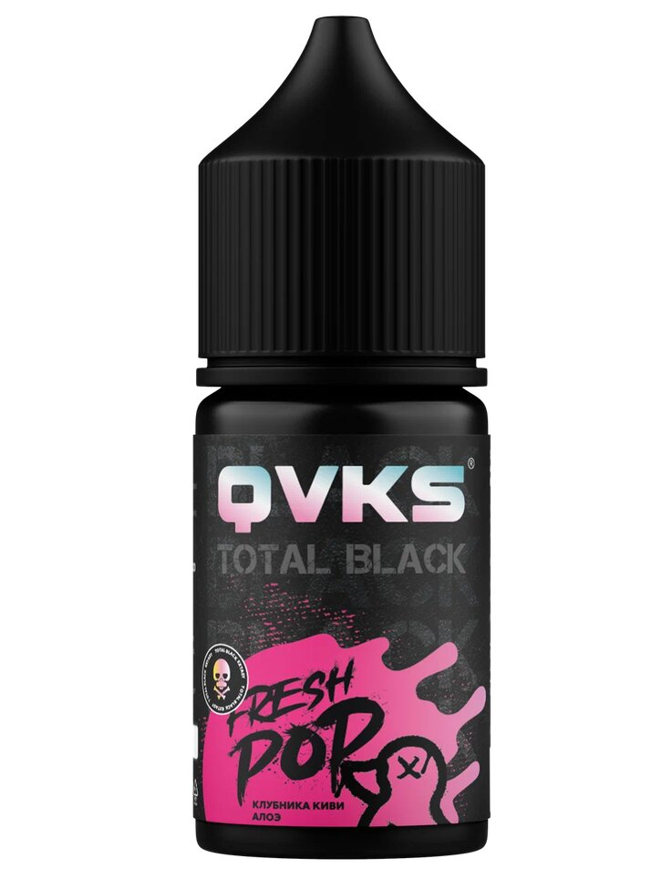 QVKS TOTAL BLACK KONSTRUKT Клубника Киви Алоэ - ароматизатор для вейпа в объёме 13 мл. Для получения готовой для использования жидкости нужно добавить только глицерин (VG).