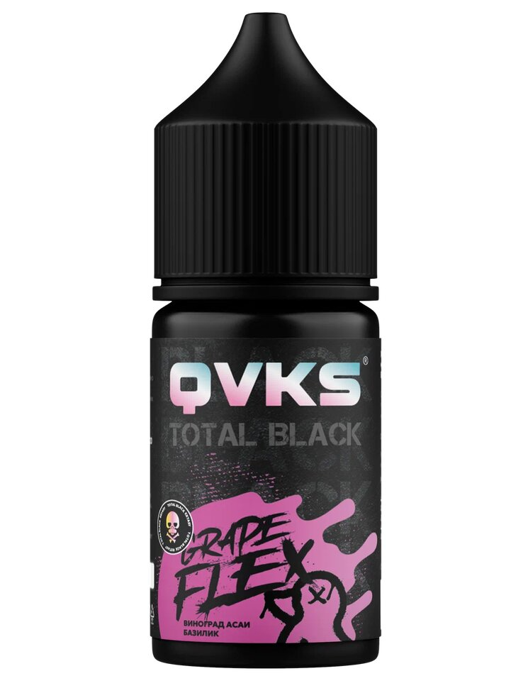 QVKS TOTAL BLACK KONSTRUKT Виноград Асаи Базилик - ароматизатор для вейпа в объёме 13 мл. Для получения готовой для использования жидкости нужно добавить только глицерин (VG).