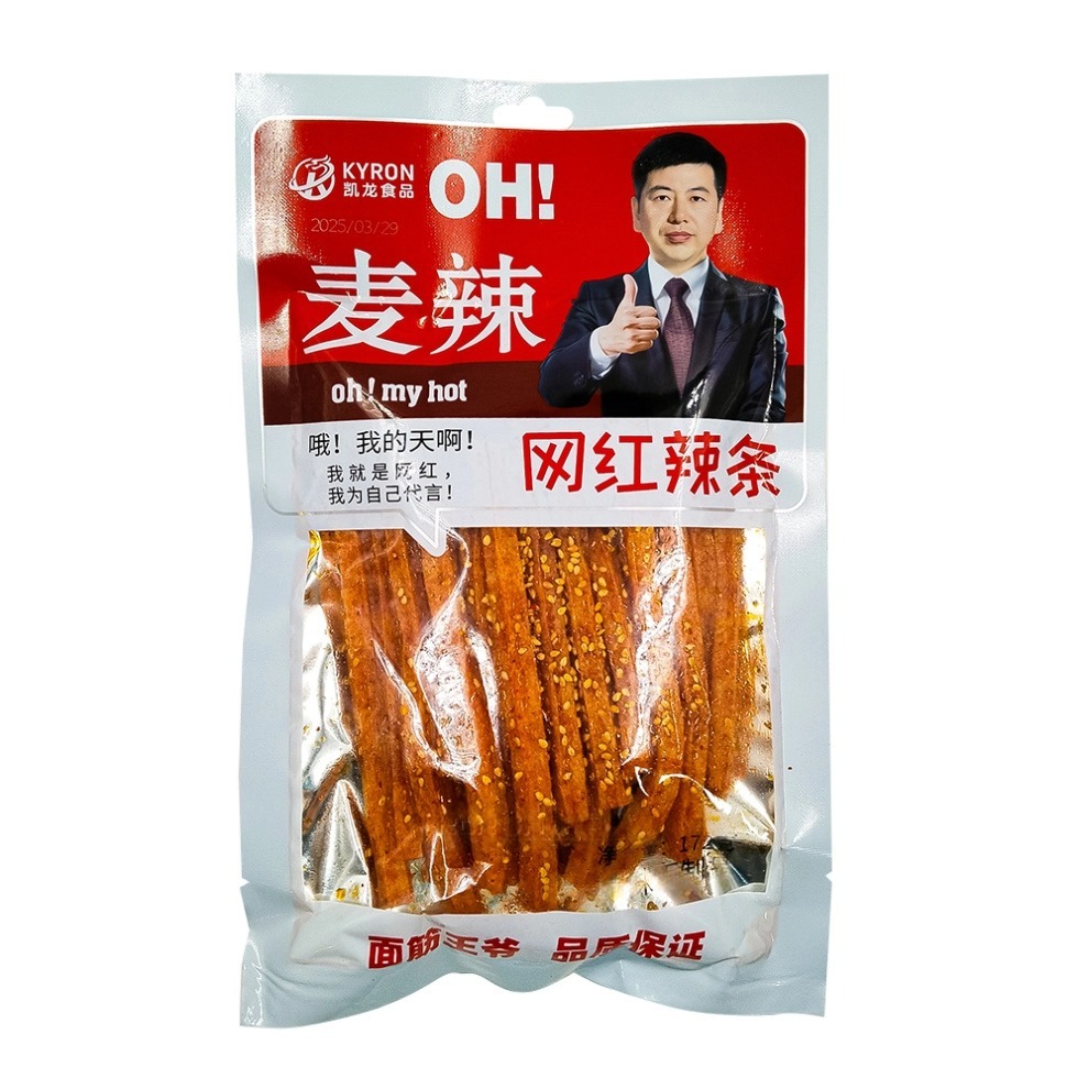 Mianjinwangye Maila - пряный снек весом 172 гр. Производится в Китае из пшеницы и сои с добавлением специй, острого перца чили, семян кунжута и масла для яркого вкуса и аромата. В отличие от воздушных хрустящих чипсов, латяо имеют мягкую, тягучую и жевательную текстуру.