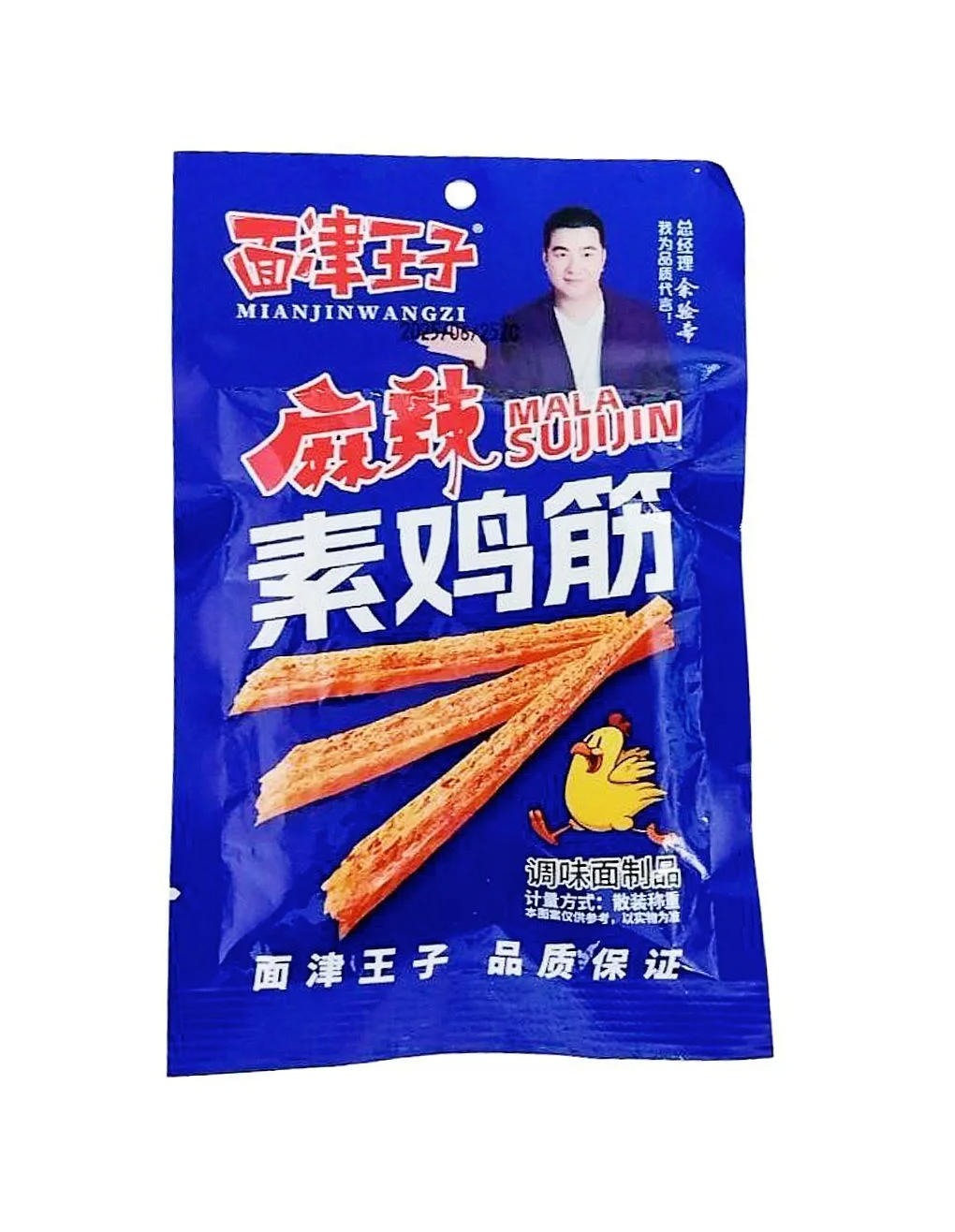 Mianjinwangzi - пряный снек весом 18 гр. Производится в Китае из пшеничной муки с добавлением специй и масла для яркого вкуса и аромата. Имеет плотную и упругую текстуру.