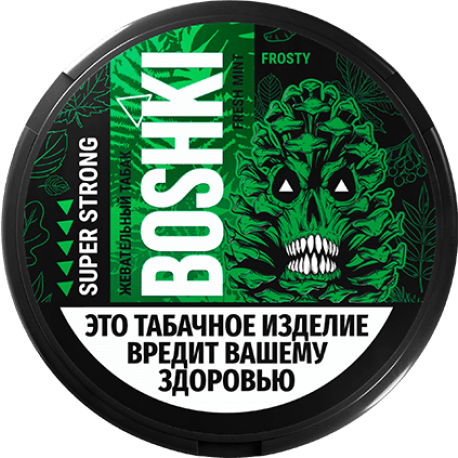 BOSHKI STRONG FRESH MINT - крепкий жевательный табак весом 10 гр. Одна шайба содержит 17 самостоятельных порций.