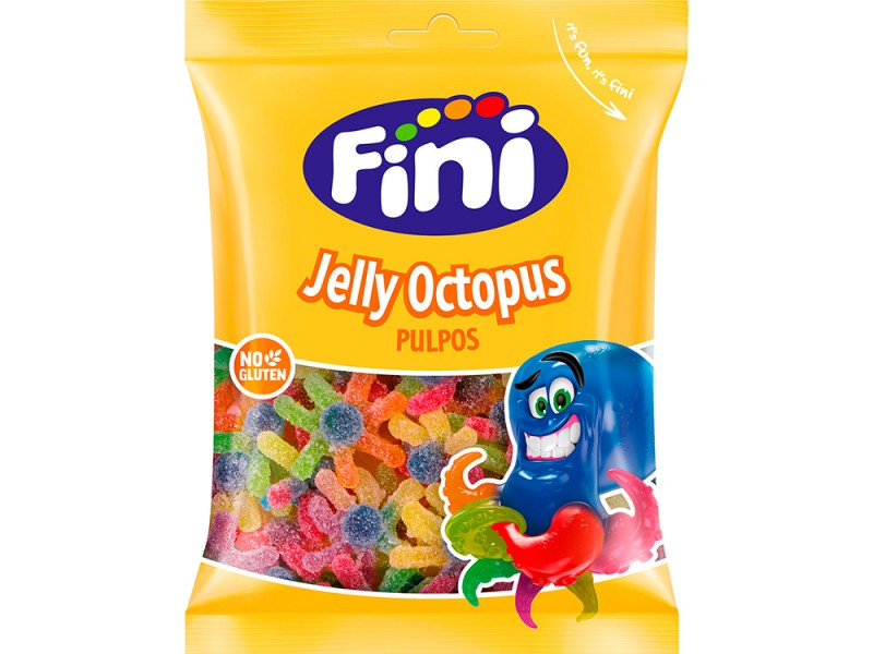 Fini Jelly Octopus - жевательный мармелад с ярким вкусом весом 90 гр. В своём составе имеет ингредиенты, соответствующие европейским стандартам качества. Произведён в Испании. В одной упаковке 12 шт.