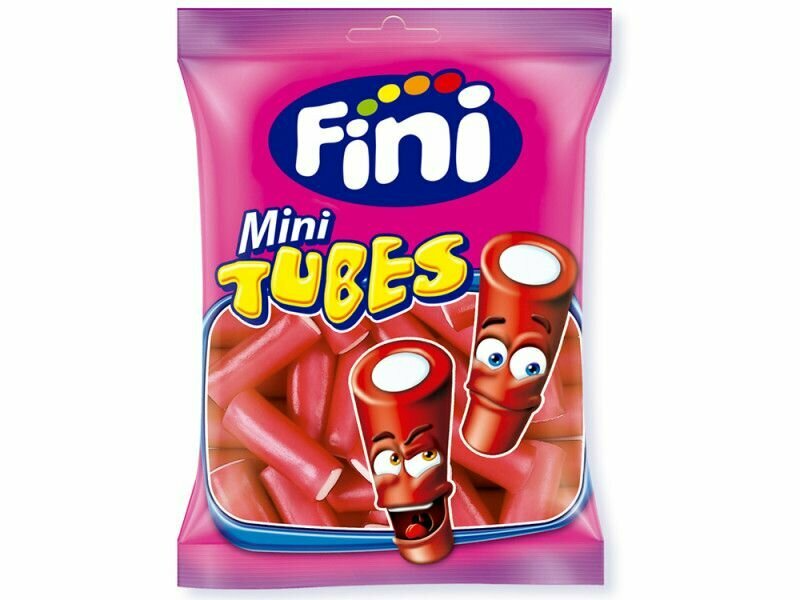 Fini Mini Tubes Strawberry - жевательный мармелад с ярким вкусом весом 90 гр. В своём составе имеет ингредиенты, соответствующие европейским стандартам качества. Произведён в Испании. В одной упаковке 12 шт.