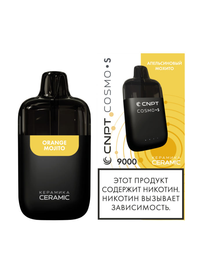 Одноразка CNPT COSMO S Апельсиновый Мохито рассчитана на 9000 тяг. Корпус устройства выполнен в минималистичном дизайне из прочного пластика с soft-touch покрытием. Девайс оснащен LED-индикатором работы устройства. АКБ имеет ёмкость 500 mAh. В бак заправлено 9 мл жидкости.