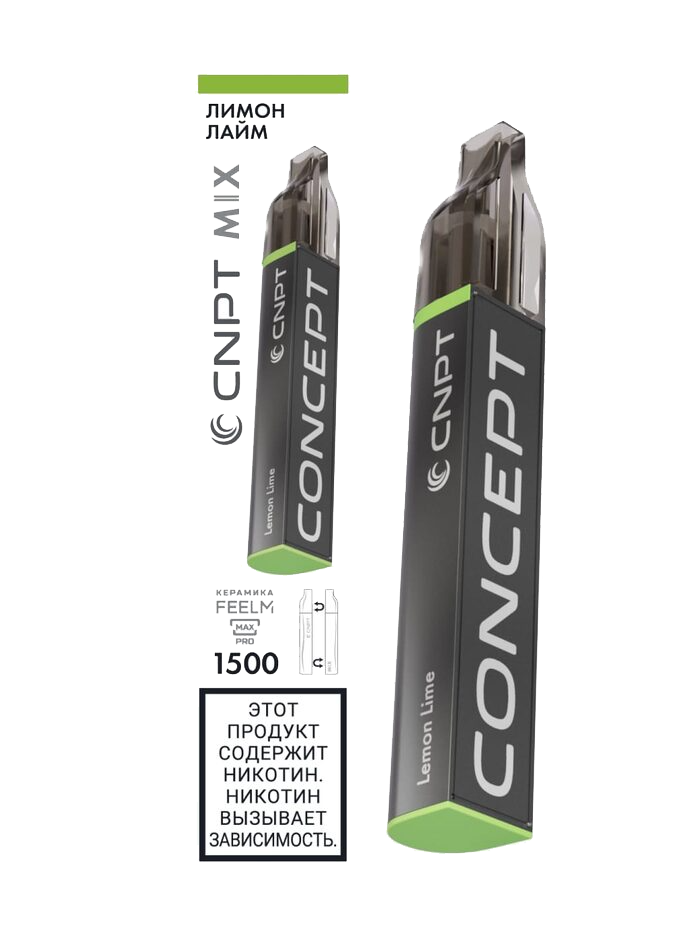 Одноразка CNPT MIX Лимон Лайм рассчитана на 1500 тяг. Корпус устройства выполнен в минималистичном дизайне в форм-факторе стика. Имеет уникальное магнитное крепление, которое позволяет соединять 2 девайса в 1 и миксовать вкусы из линейки по своему желанию. Ёмкость АКБ составляет 500 mAh. В бак заправлено 2 мл жидкости.