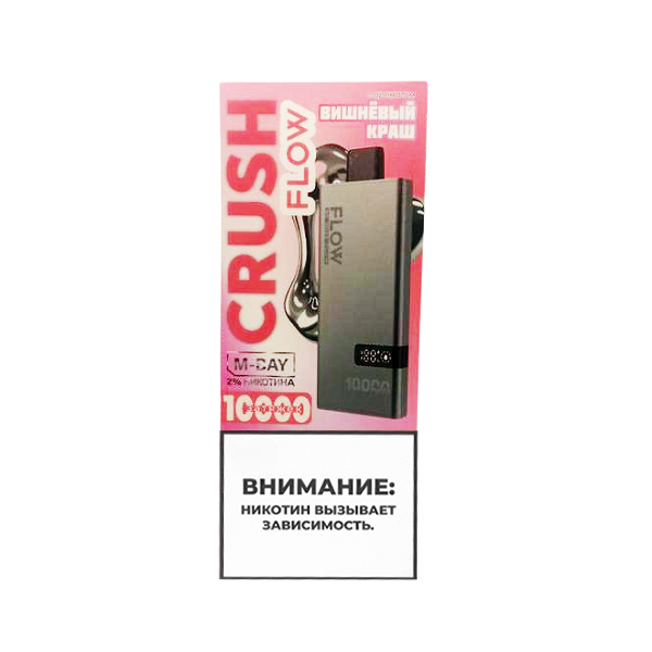 Одноразка FLOW M-BAY Вишнёвый Краш рассчитана на 10000 тяг. Тонкий корпус девайса выполнен из алюминия. На лицевой части устройства расположен экран с индикацией заряда и оставшегося объёма жидкости. В бак предзаправлено 10 мл жидкости. Ёмкость встроенного АКБ составляет 500 mAh.