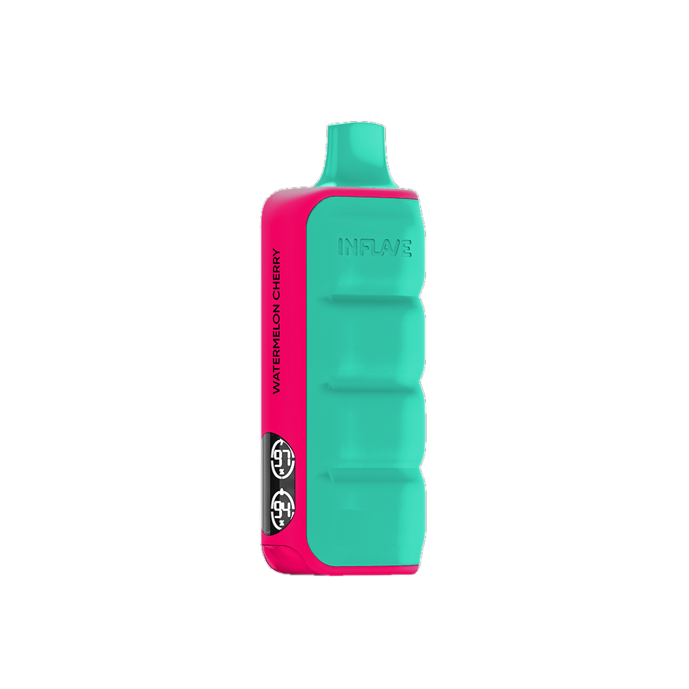 INFLAVE FLEX Арбуз вишня - одноразка с ярким дизайном, которая рассчитана на 12000 тяг. Корпус девайса имеет мягкое и тактильно приятное силиконовое покрытие. В soft-touch участки добавлен люминофор, который способен накапливать свет и излучать его в темноте. На боковой грани расположен дисплей, отображающий актуальный уровень заряда и оставшейся жидкости. АКБ имеет ёмкость 650 mAh и возможность быстрой зарядки через USB Type-C.