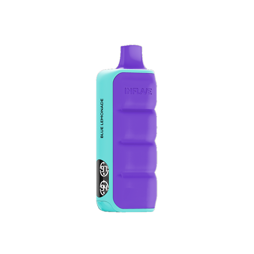 INFLAVE FLEX Голубой лимонад - одноразка с ярким дизайном, которая рассчитана на 12000 тяг. Корпус девайса имеет мягкое и тактильно приятное силиконовое покрытие. В soft-touch участки добавлен люминофор, который способен накапливать свет и излучать его в темноте. На боковой грани расположен дисплей, отображающий актуальный уровень заряда и оставшейся жидкости. АКБ имеет ёмкость 650 mAh и возможность быстрой зарядки через USB Type-C.