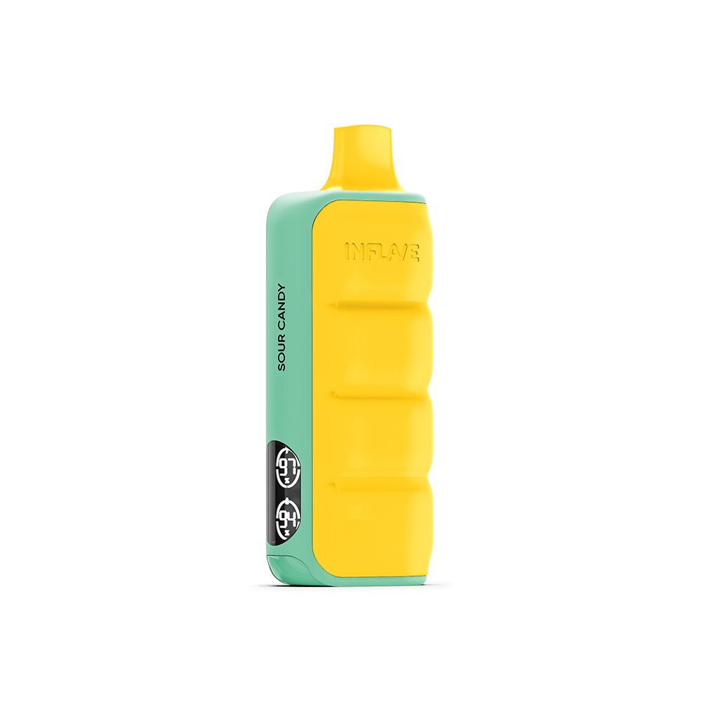INFLAVE FLEX Кислое драже - одноразка с ярким дизайном, которая рассчитана на 12000 тяг. Корпус девайса имеет мягкое и тактильно приятное силиконовое покрытие. В soft-touch участки добавлен люминофор, который способен накапливать свет и излучать его в темноте. На боковой грани расположен дисплей, отображающий актуальный уровень заряда и оставшейся жидкости. АКБ имеет ёмкость 650 mAh и возможность быстрой зарядки через USB Type-C.