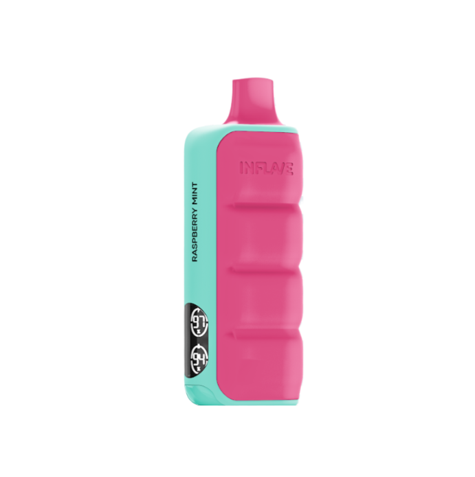 INFLAVE FLEX Малиновая мята - одноразка с ярким дизайном, которая рассчитана на 12000 тяг. Корпус девайса имеет мягкое и тактильно приятное силиконовое покрытие. В soft-touch участки добавлен люминофор, который способен накапливать свет и излучать его в темноте. На боковой грани расположен дисплей, отображающий актуальный уровень заряда и оставшейся жидкости. АКБ имеет ёмкость 650 mAh и возможность быстрой зарядки через USB Type-C.