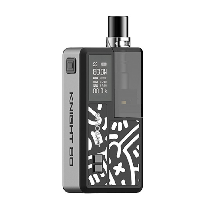 Smoant Knight 80 Baroque White - мощная POD-система с большими возможностями. Девайс выполнен из пластика и металла, боковые стороны украшают вставки с цветными принтами. Устройство работает от одного аккумулятора формата 18650 (в комплект не входит). На монохромном OLED экране одновременно отображаются режим работы, индикатор заряда аккумулятора, установленные единицы мощности или температуры, напряжение, сопротивление, количество сделанных затяжек и таймер последней затяжки. В катридж вмещается 4 мл жижи. С данным ПОДом можно использовать RBA базу.