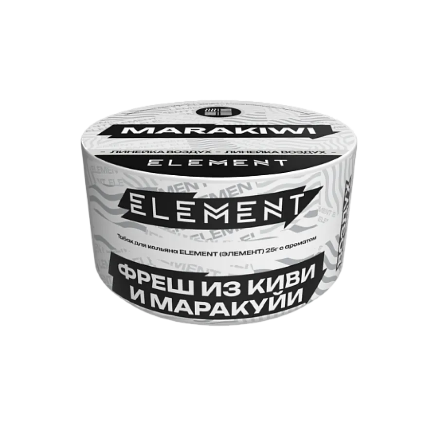 Табак для кальяна Element "Воздух" - Marakiwi поставляется в весе 25 гр. Имеет среднюю дымность и лёгкую крепость. В производстве линейки используется бленд табачных сортов Вирджиния из разных стран Европы.